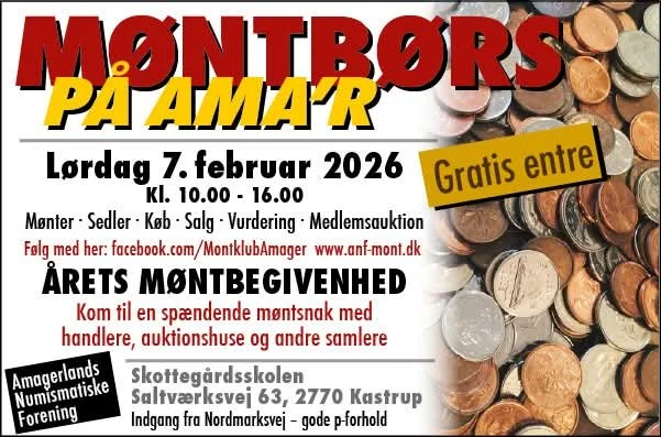 Lørdag d. 7. februar 2026 deltager vores møntafdeling i messen “Møntbørs på Ama’r”.